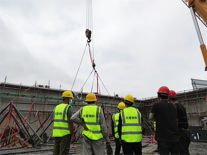 5、球形網架安裝時應先在柱頂彈出軸線 ,認真測量對角線尺寸,對個網格和排網架做的的測量和校正。